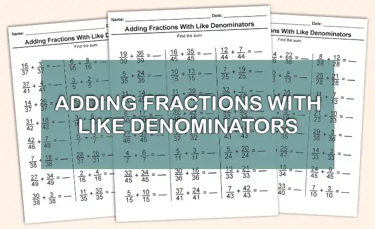 Adding Fractions With Like Denominators Practice Sheets Download Free Printable Math Worksheets PDF You can download each worksheet on its…