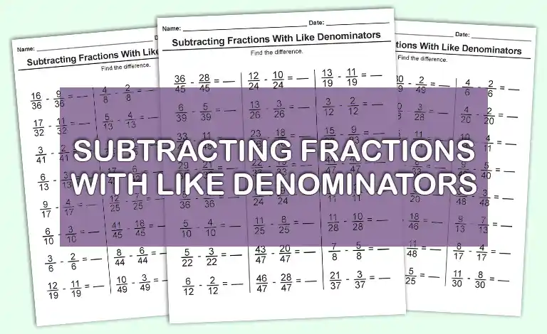 Subtracting Fractions With Like Denominators Practice Download Free Printable Math Worksheets PDF You can download each worksheet on its own…